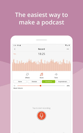 • Máy ghi âm và trình tạo podcast tất cả trong một để tạo podcast.